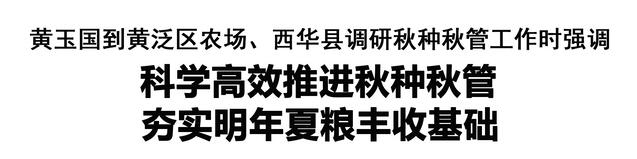 調(diào)研中,黃玉國強調(diào),各地要把落實小麥種植面積作為今年秋種的首要任務,加強組織調(diào)度,充分發(fā)揮基層組織作用,多措并舉做好小麥抗?jié)癫シN,確保小麥種植面積穩(wěn)定。要科學開展田間管理,做到播后即管、管早管好、全程精細,切實做好病蟲草害防控、肥水管理等,努力實現(xiàn)晚播不減產(chǎn)。要高質(zhì)量推進高標準農(nóng)田建設,持續(xù)推進農(nóng)村溝渠連通整治,加快補齊排澇除旱等方面短板弱項,提升農(nóng)業(yè)防災減災能力,促進農(nóng)業(yè)提質(zhì)增效、農(nóng)民穩(wěn)定增收。