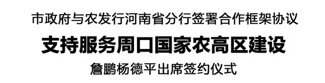 本報訊 (記者 李鳳霞) 11月20日,周口市人民政府與中國農(nóng)業(yè)發(fā)展銀行河南省分行舉行支持服務(wù)周口國家農(nóng)高區(qū)建設(shè)合作框架協(xié)議簽約儀式。市長詹鵬,中國農(nóng)業(yè)發(fā)展銀行河南省分行黨委書記、行長楊德平出席簽約儀式并舉行工作會談。中國農(nóng)業(yè)發(fā)展銀行河南省分行副行長杜軍、副市長孔陽代表雙方簽約。