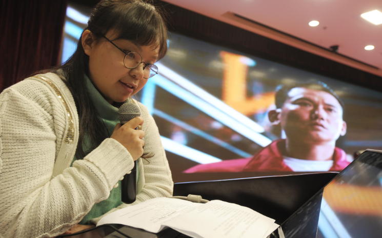 “蘑菇云騰空而起,中國第一顆原子彈爆炸成功。高遠(yuǎn)看向天空,臉上露出了欣慰和感動的笑容……”送別觀影的盲人朋友,武漢市青山區(qū)新溝橋街道蔣家墩社區(qū)干事杜誠誠旋即投入下一部電影的解說稿撰寫。