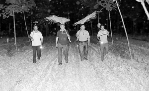 幾束明亮的燈光在田間地頭緩慢地移動著,燈光中干部們肩扛鐵鍬和掃把不斷地重復著“三夏”期間不變的固定巡查模式……